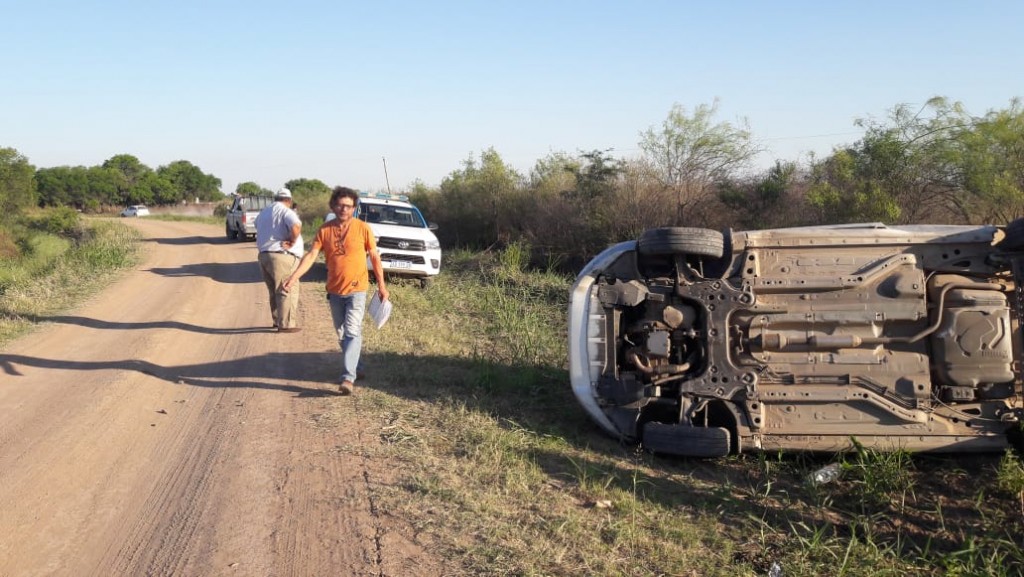 Colonia J.J. Paso: UN VEHÍCULO VUELCA EN UN CAMINO VECINAL LUEGO DE PASAR LA CURVA
