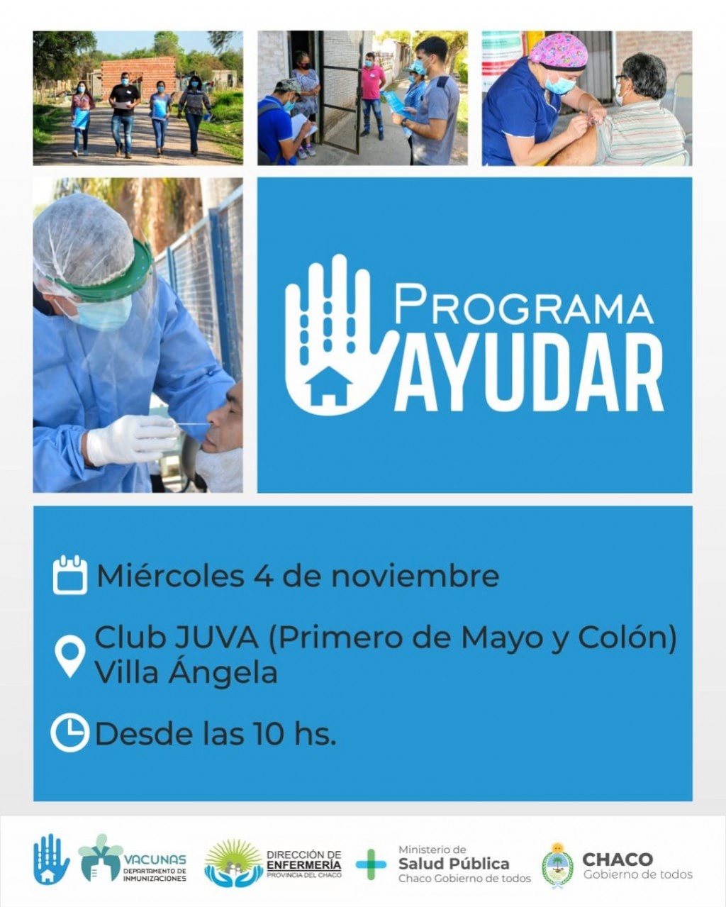 Villa Ángela: NUEVO OPERATIVO DEL PROGRAMA AYUDAR HOY MIÉRCOLES 04 A LAS 10 HS. EN EL CLUB JUVA