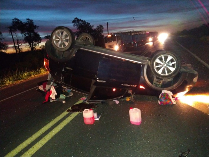 El rodado volcado quedó en medio de la cinta asfáltica y el conductor del rodado fue derivado al hospital 4 de Junio.