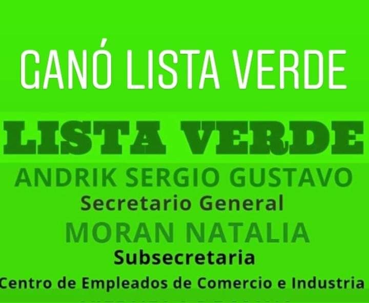La lista verde esta compuesta por el Secretario General, Sergio Gustavo Andrik , y su subsecretaria �Natalia Moran,�quien hoy gano las elecciones por 71 votos de diferencia.�