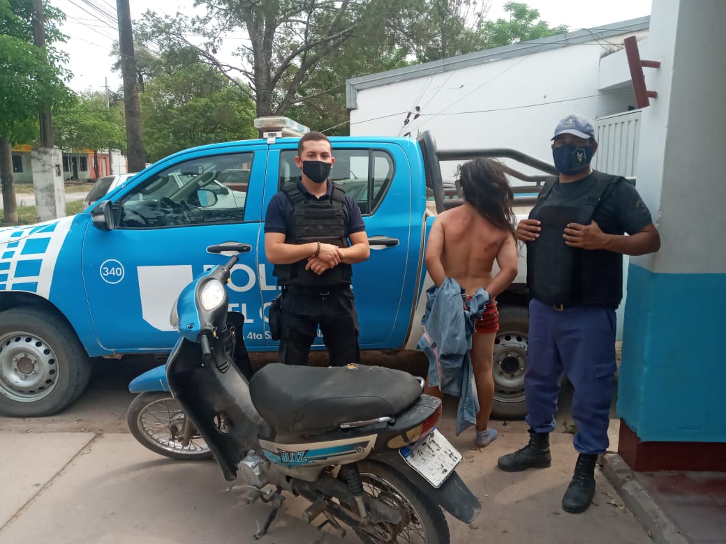 Al llegar efectivos policiales en varios móviles, los vecinos entregaron al delincuente de 21 años de edad a los uniformados. Además se procedió al formal secuestro de una motocicleta marca Motomel Blitz de 110 cc., color gris con azul.
