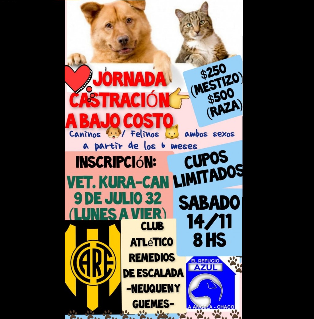 Villa Ángela: EL SÁBADO 14 SE REALIZA UNA NUEVA CAMPAÑA DE CASTRACIÓN A BAJO COSTO EN EL CLUB ATLETICO REMEDIOS DE ESCALADA.