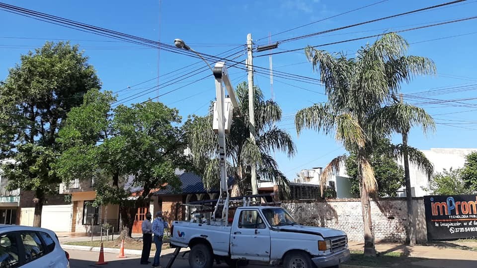 Villa Ángela: LA MUNICIPALIDAD TRABAJA EN LA REPARACIÓN DE LA LUMINARIA SOBRE CALLE MITRE Y AV. COLÓN