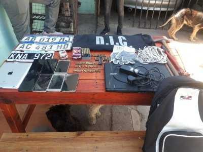 Posteriormente, en otro inmueble ubicado en la intersección de las calles Borrini y San Pedro, secuestraron un celular, dos cortahierros y un martillo tipo masa. Seguidamente, en el barrio Santa Inés, en la manzana 78 incautaron una notebook, siete teléfonos, barretas, corta hierros, un alicate "corta candados", una tablet, tres chapas patentes, sogas, 131 cartuchos de diferentes calibres. Además detuvieron al principal morador y ex empleado del comercio de 38 años en la causa " Supuesta Infracción al Artículo 189 bis".