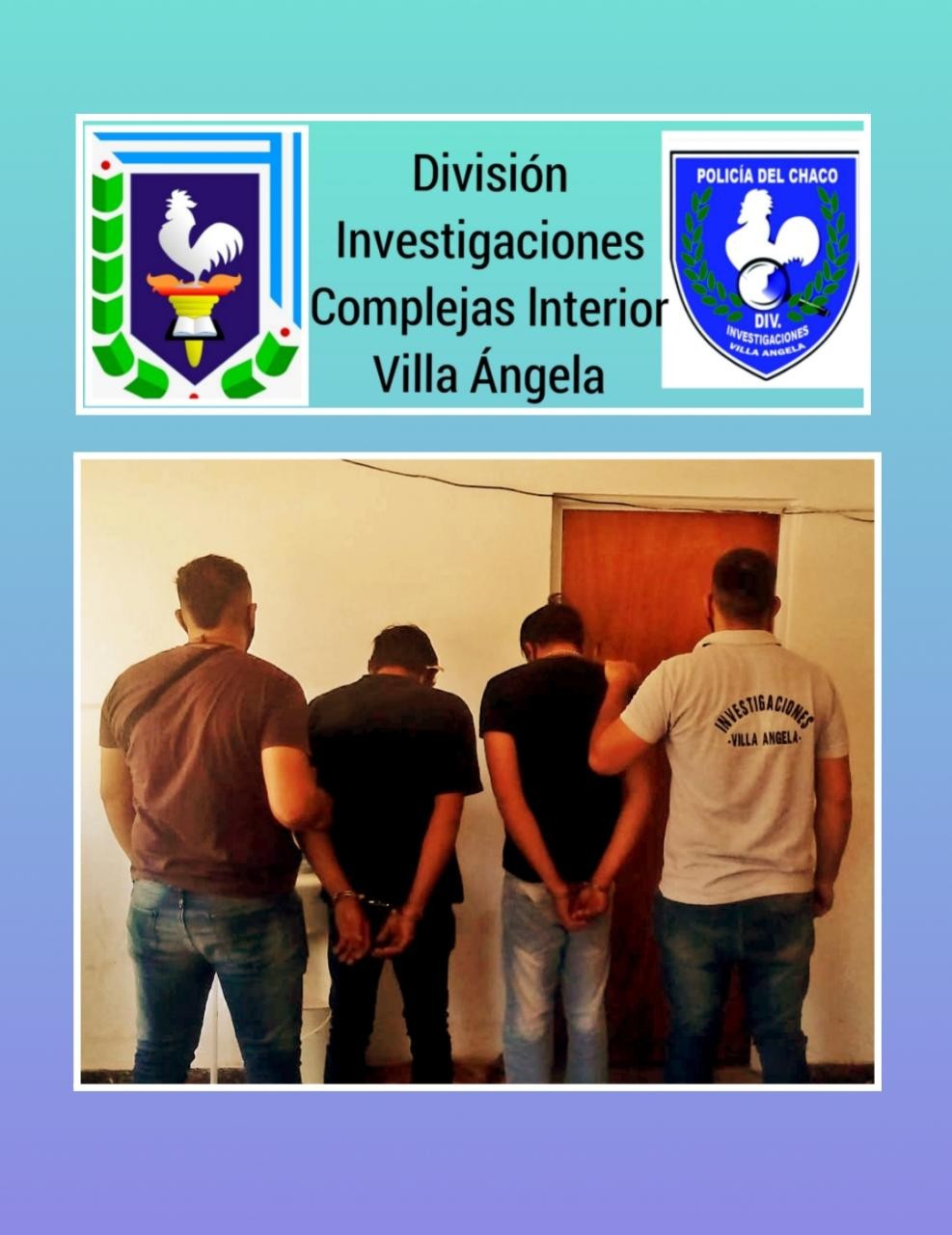 Los mismos fueron notificados de su DETENCION en sede de tribunales y conforme a Oficio se procedió a su traslado a Comisaría Segunda de Villa Ángela donde permanecerán alojados a ulterior resolución de autos.