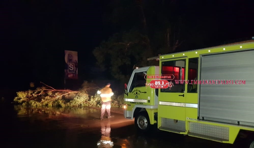 El personal de la División de Bomberos de Villa Ángela, debió intervenir en el acceso norte de la localidad para levantar de la vía pública arboles y ramas que el temporal dejó.