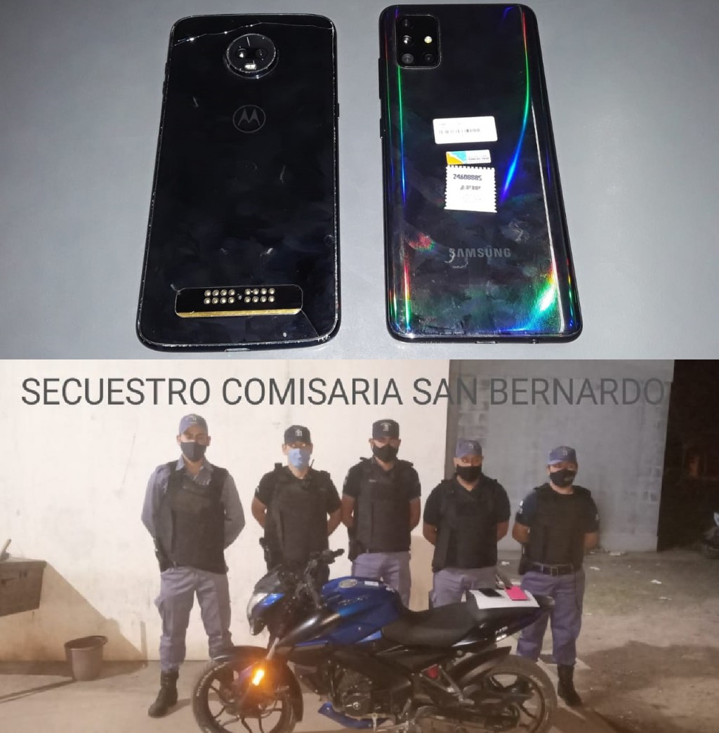 En la noche del viernes 11 de diciembre a las 23:30 hs, la Sra. R. G. G. de 33 años, denunció que, momentos en que su hijo menor G. F. de 15 años, al encontrarse en la vereda cercanía a calle 12 entre 7 y 5, junto a dos amigos, usando celulares, se  apersona  un masculino caminando y a su lado otro conduciendo una MOTOCICLETA ROUSER NEGRA, y uno de ellos lo toma del cuello y le sustrae (01) TELEFONO CELULAR MOTOROLA Z3 PLAY, COLOR NEGRO, SIN FUNDA y luego emprenden la fuga.