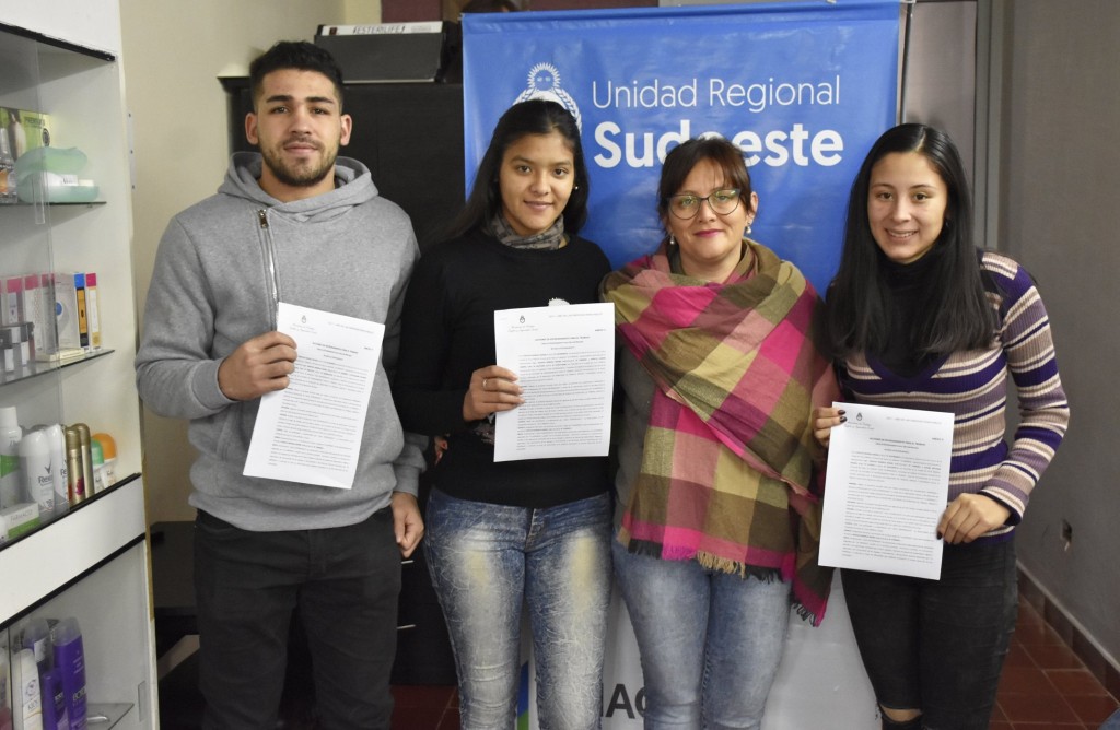 A través del Área De Empleo de la Unidad Regional Sudoeste y articulado con la Secretaría de Empleo y Trabajo a cargo de Maria Natalia Mustillo, durante el mes de mayo,los jóvenes villangelenses, Lorena Vanina Peralta , Bettiana Magali Valdez y Facundo Teitelbaum firmaron su Convenio de Entrenamiento Laboral, de #Auxiliares en Peluqueria y Mantenimiento a cargo de la Profesional Mariela Segovia propietaria de Peluquería Mía.