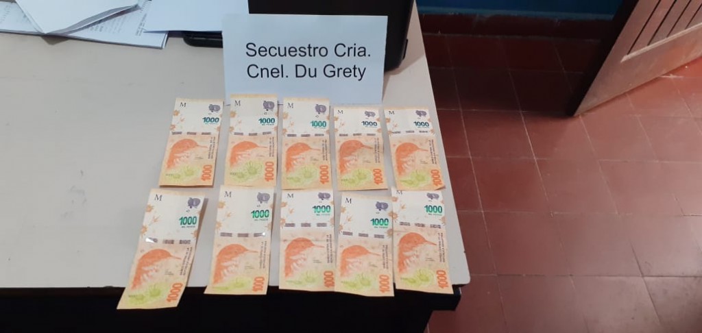 Mediante arduas tareas investigativas llevadas cabo por el personal policial y conforme los dichos de personas confiables, se logró la individualización y conducción del sindicado autor A. A. A., de 21 años, y se logró el SECUESTRO en poder mismo de $10.000, todos billetes de Mil Pesos.