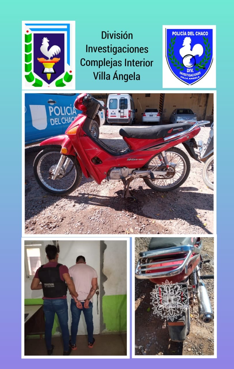 En base a la solicitud de colaboración, se afectó a los móviles de la Unidad Policial y a horas 9:20 el personal de la División de Investigaciones Complejas Interior Villa Ángela logra interceptar a un masculino con similares características, guiando el mismo rodado en intersección de calles José Martin y Av. Alberdi, procediendo a su identificación como L. S. C. (alias) “TERROSO”, de 27 años, asimismo se procedió al SECUESTRO de una Motocicleta marca HONDA, modelo WAVE, color roja, masculino que fue conducido a la División de Sanidad Policial, siendo examinado por el Dr. Walter Fabian DABROWSKI y seguidamente traslado a la Unidad Policial con el secuestro.