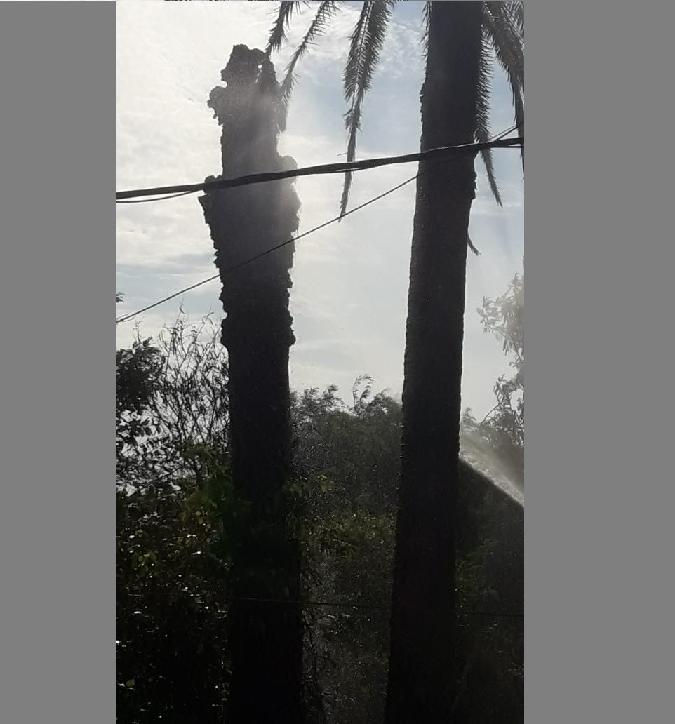 En la tarde de este martes a las 16:45, el personal de la División de Bomberos de Policía de Villa Ángela, toma conocimiento de que en calle Sáenz Peña N° 335, se producía el incendio de palmeras.