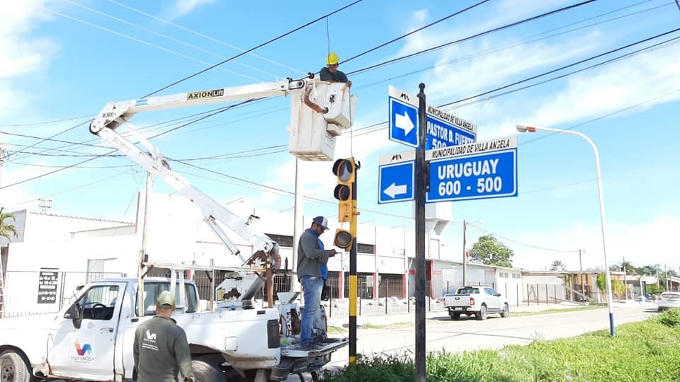 La Municipalidad de Villa Ángela, a través del Departamento de Electricidad, habilitó el semáforo en la esquina de Uruguay y Pastor Fuertes. Asimismo, continúan las tareas del mejoramiento en el alumbrado público en diferentes barrios de la ciudad.