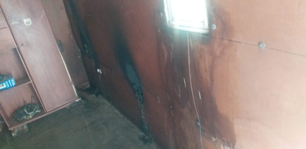 El fuego en su accionar ocasionó daños sobre (02) tomacorrientes y tiznamiento en todo el interior del inmueble.