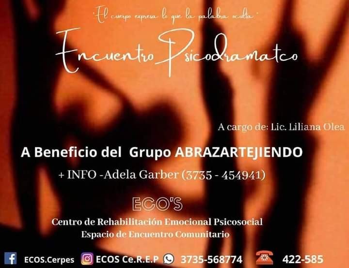 Por otro lado, "abrazar tejiendo" trabajará con el grupo ecos sobre un taller de psicodrama reducido a 10 personas. "Es una manera de aunar esfuerzos para producir una tarea comunitaria que yo creo que eso es lo que nos gusta, que las redes solidarias puedan encontrarse para un mayor alcance. Para el 12 de febrero está propuesto el primer taller de psicodrama " informó Adela Garber.