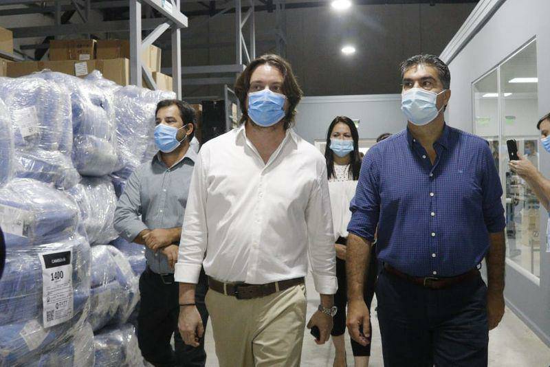 El gobernador Jorge Capitanich y el ministro de Producci�n, Industria y Empleo, Sebasti�n Lifton, visitaron la f�brica de barbijos Zutt Protect en Barranqueras, donde firmaron un convenio para que los municipios puedan acceder a los productos de la empresa a precios de costo.