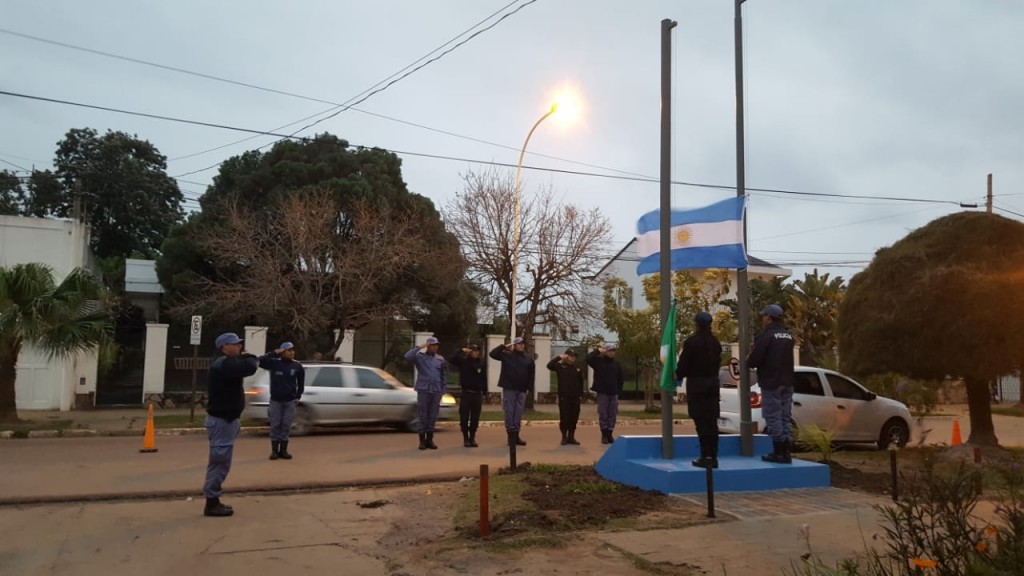 Con la correspondiente ceremonia, la división de bomberos hizo uso de su mastil e izó la bandera de la Pátria y el Pabellón provincia.