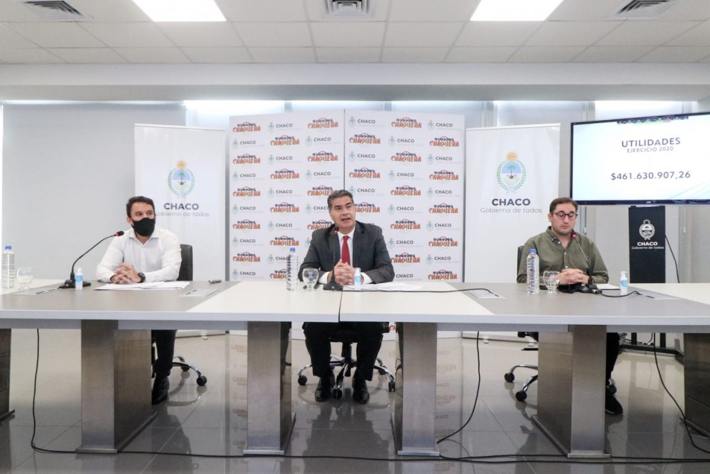 El gobernador Jorge Capitanich junto al ministro de Planificación, Economía e Infraestructura, Santiago Pérez Pons, y al titular de Lotería Chaqueña, Gabriel Lemos, dio a conocer el balance de la entidad durante el 2020. "Lotería chaqueña es la lotería del pueblo, todas sus utilidades se vuelvan a entidades de bien público", destacó el mandatario .