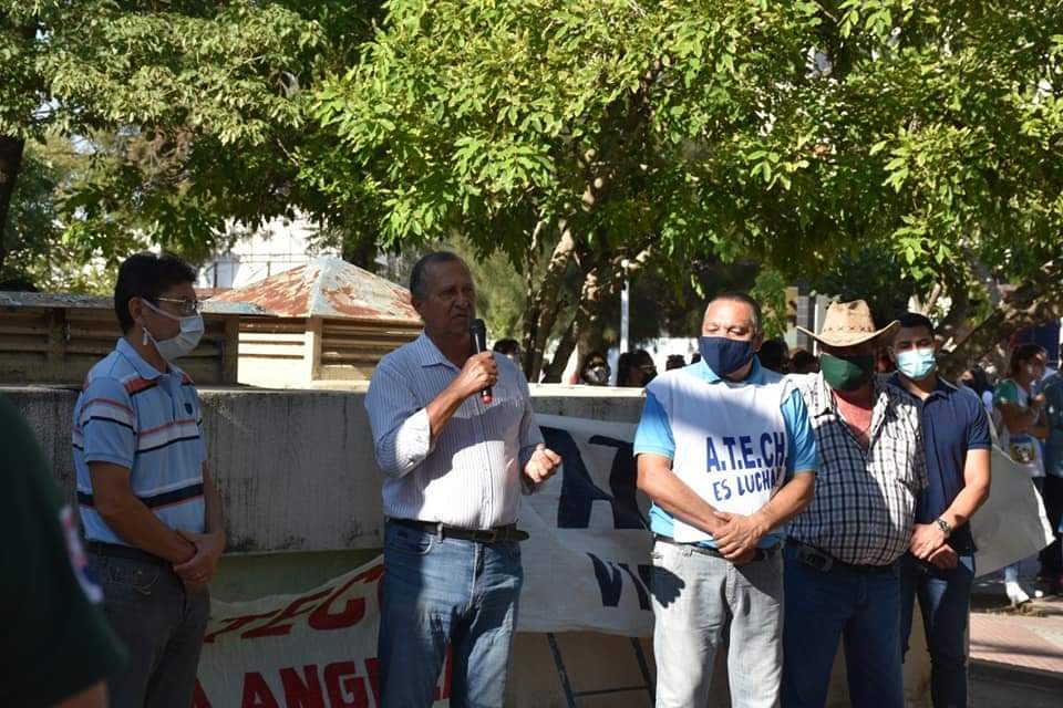 El intendente de la municipalidad de Villa Ángela, ing. Adalberto Papp recibió esta mañana el petitorio presentado por los docentes reunidos en la plaza central.