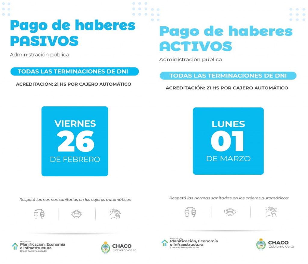 El 26 de febrero se dará inicio al cronograma de pagos de sueldos con el depósito a los jubilados. En tanto, el lunes se avanzará con el pago del salario a los trabajadores activos de la administración pública provincial.