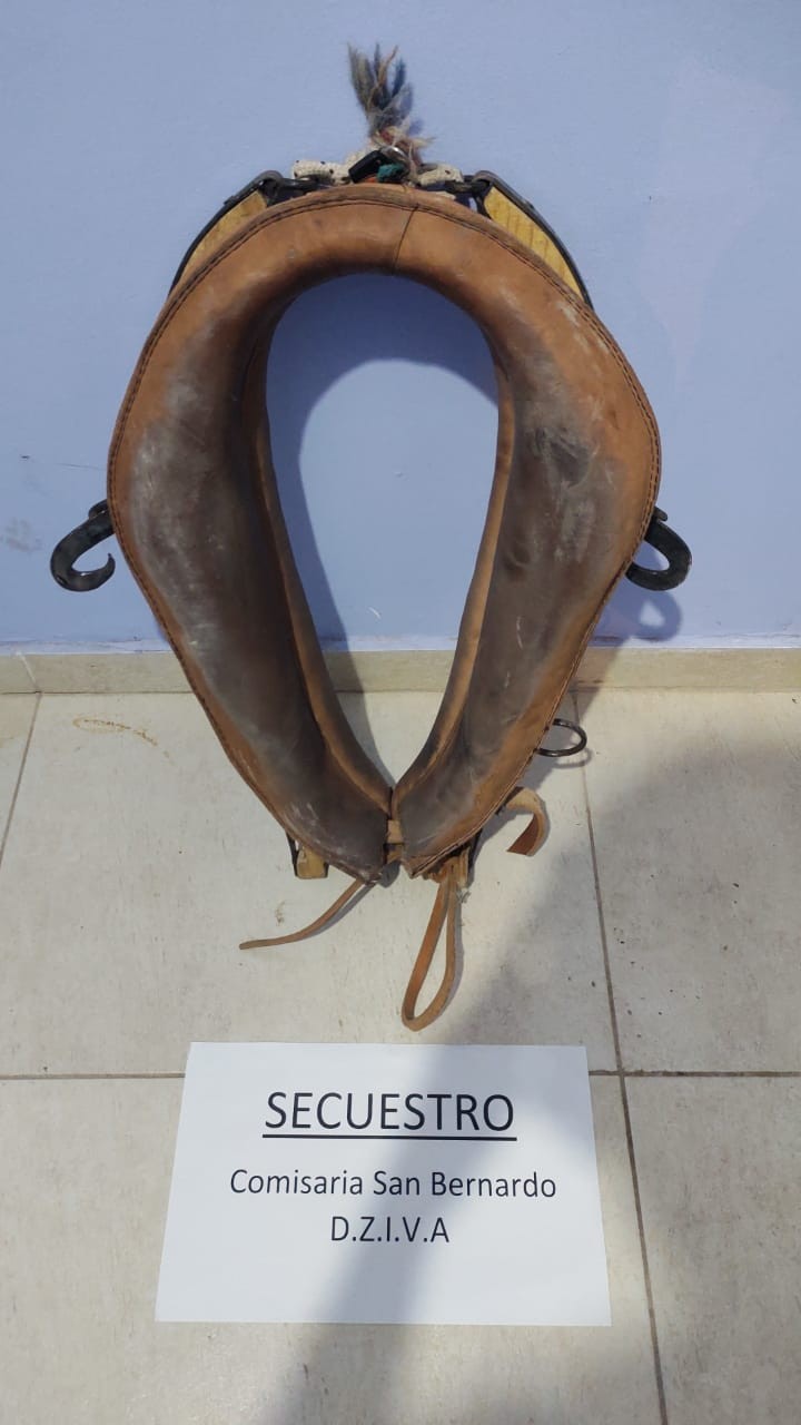 En la noche del jueves 25 de febrero, a las 21:50 hs. aproximadamente, D. M. D. de 37 años del Barrio lote N° 6 de la localidad de San Bernardo, denunció que, tras encontrarse en la fecha en su domicilio durmiendo, dejando la puerta de acceso abierta, donde a horas 02:00 escucho ruidos en la parte del comedor de su domicilio levantándose pudo  observar a dos individuos de sexo masculino, de estatura baja, cuerpo delgado llevando uno de estos bajo el brazo una pechera de equino de cuero color marrón con yubiyo.