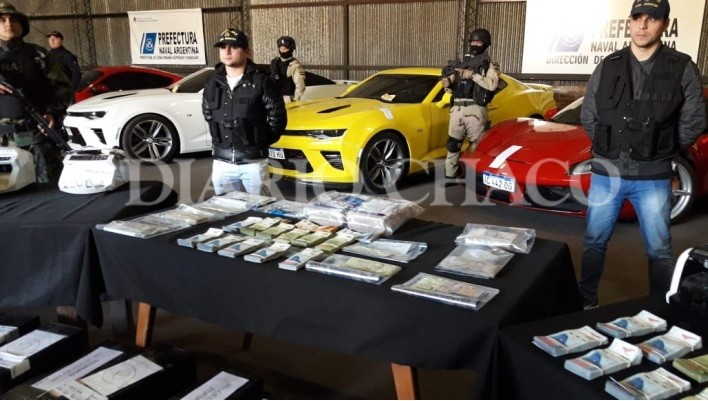 Como resultado de los operativos, la fuerza nacional incautó camiones, autos y camionetas de alta gama, motos, dinero en efectivo, computadoras y contadoras de billetes, todos elementos que se exhiben esta mañana en el galpón de Prefectura. También se confirmó que hubo detenciones, entre ellos el empresario Cristino Villalba.