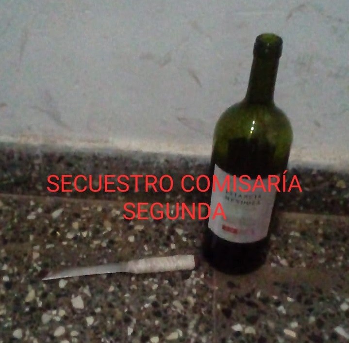 Se procede al secuestro en poder de G. de un Cuchillo tipo serrucho, marca TRAMONTINA, una BOTELLA de vino, marca ESTANCIA MENDOZA y un rodado marca MOTOMEL 150 c.c.