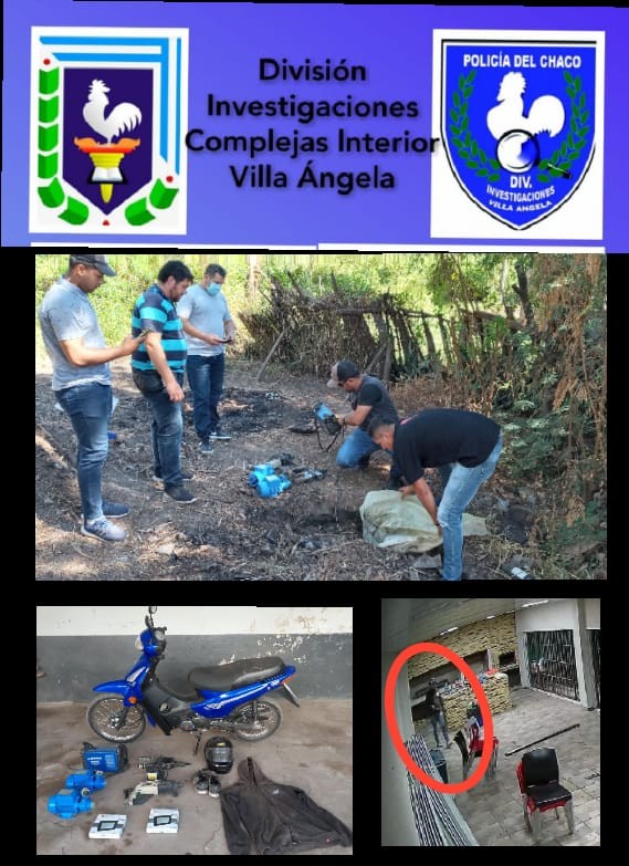 Seguidamente se procede a diagramar un operativo dirigiéndose hacia el B° Sargento Cabral donde residen estos sujetos, visualizando en intersección de Av. W. Espinoza y Cuenca al “CORDOBES” quien se movilizaba en una motocicleta de color azul (mismas características a las captadas en las cámaras de seguridad) y llevaba consigo una bolsa de nylon amarilla, quien al percatarse de la presencia policial acelera el rodado y se da a la fuga ingresando a su domicilio.