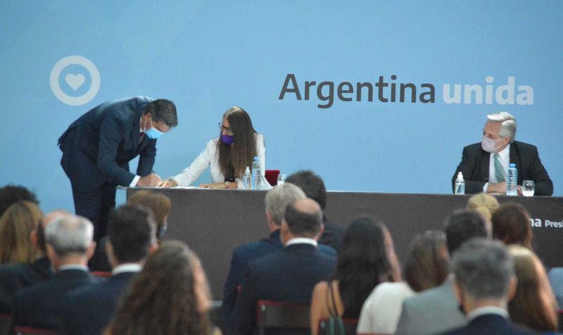 Participaron en el acto los gobernadores Axel Kicillof (Buenos Aires), Gustavo Bordet (Entre Ríos), Sergio Ziliotto (La Pampa), Arabella Carreras (Río Negro), Omar Gutiérrez (Neuquén), Mariano Arcioni (Chubut), Gustavo Melella (Tierra del Fuego), Sergio Uñac (San Juan), José Manzur (Tucumán), Gerardo Zamora (Santiago del Estero), Gildo Insfrán (Formosa), Jorge Capitanich (Chaco) y Oscar Herrera Ahuad (Misiones). Asimismo, estuvieron conectados a través de videoconferencia los mandatarios provinciales Gustavo Valdés (Corrientes), Gerardo Morales (Jujuy), Ricardo Quintela (La Rioja), Gustavo Sáenz (Salta) y Alicia Kirchner (Santa Cruz).