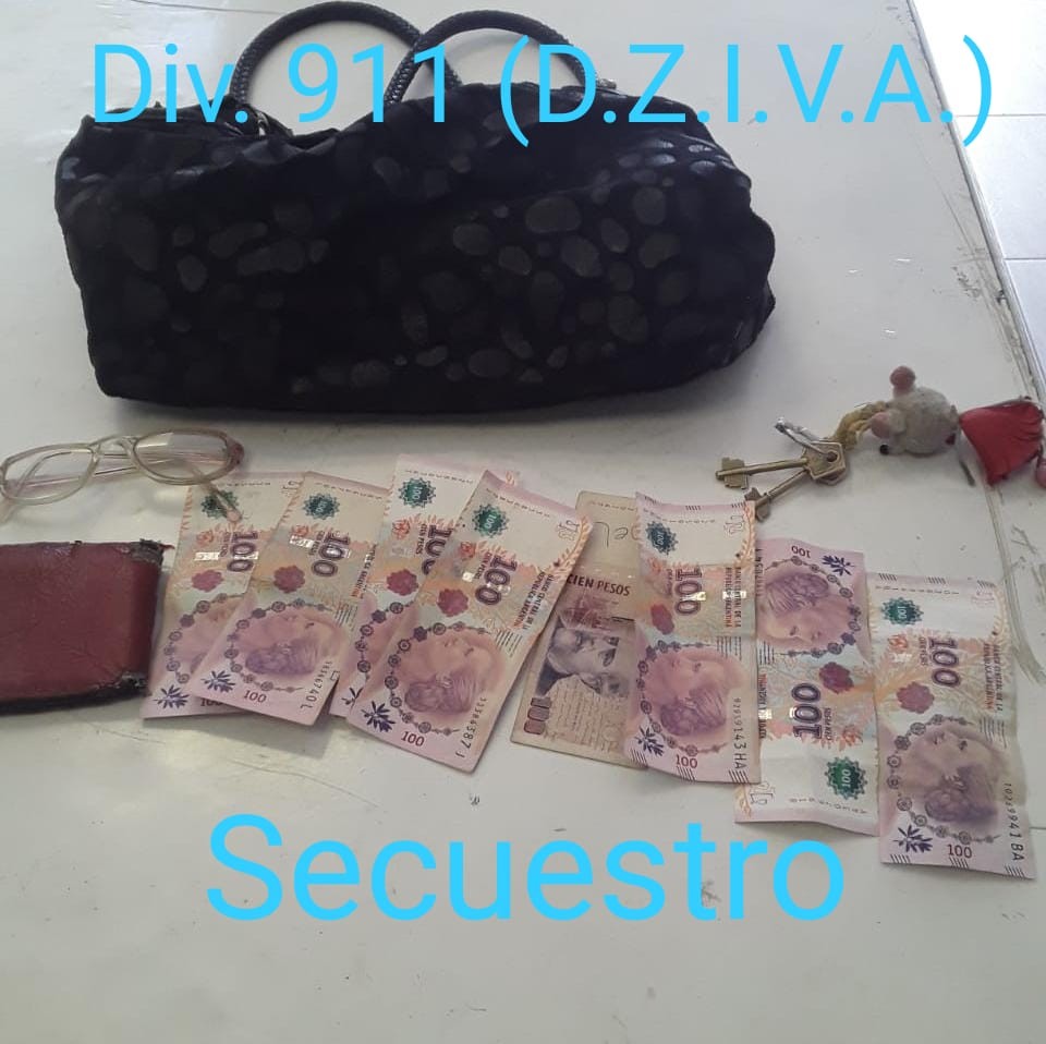 Al llegar, se constato una cartera de color negra en su interior, una billetera color rojo con la suma de 800 pesos, manojo de llaves y anteojos, no encontrándose el celular.