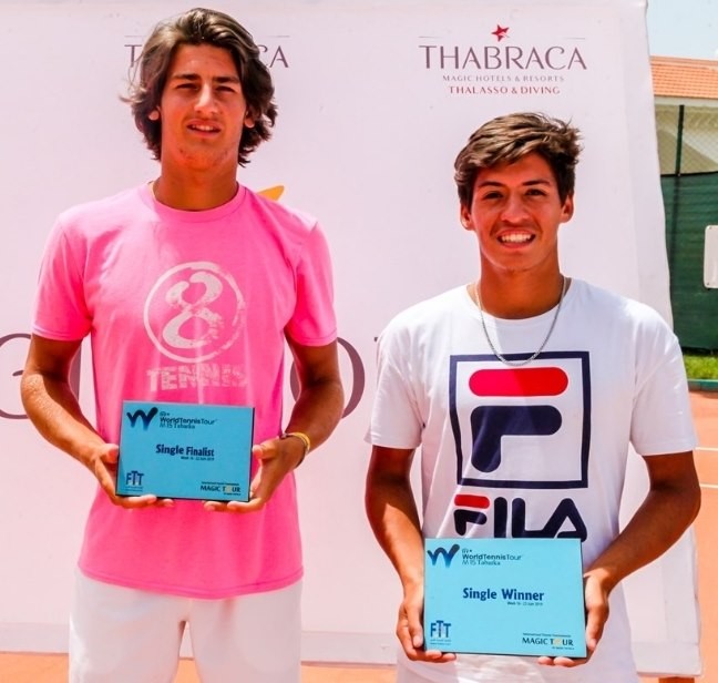 El intendente de la ciudad, ing. Adalberto Papp felicita a Sebastián Báez, el joven tenista de raíces villangelenses, por su segundo título profesional obtenido en Túnez.