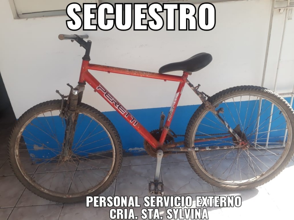 Personal del Servicio Externo de la Comisaría de Santa Sylvina, tras tareas investigativas, por fuentes fidedignas, logra el hallazgo del elemento denunciado como sustraído, la cual se hallaba oculta en un terreno baldío a cercanías del Barrio Sta. Teresita de la localidad, procediéndose a su formal secuestro.
