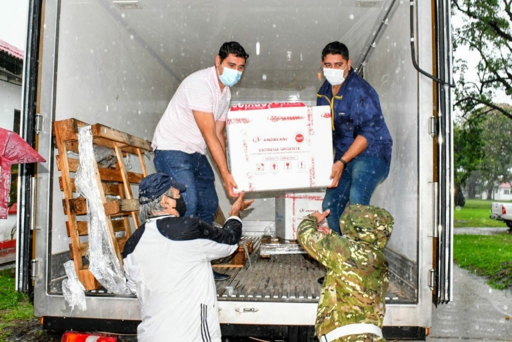 Las 14 conservadoras y 8.400 dosis ingresaron a la Base de Apoyo Logístico Resistencia del Ejército Argentino y al Departamento de Inmunizaciones, para su almacenamiento, fraccionamiento y distribución en los diferentes distritos chaqueños. La ministra de Salud Pública Paola Benítez, el jefe del Departamento de Inmunizaciones Daniel Antúnes y agentes del Ministerio de Salud Pública, del Ejército Argentino y del correo formaron parte de la comitiva que recibió este nuevo envío de vacunas para el Chaco.