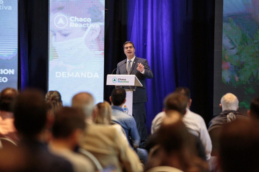 El gobernador Jorge Capitanich, junto al ministro de Planificación, Economía e Infraestructura, Santiago Pérez Pons, lanzó este sábado el Plan Económico “Chaco Reactiva”, que nuclea una serie de programas y políticas públicas para dinamizar la economía, generar empleo y potenciar el consumo. La presentación se realizó en el Centro de Convenciones Gala, con el acompañamiento de referentes del empresariado chaqueño e instituciones económicas y sociales.