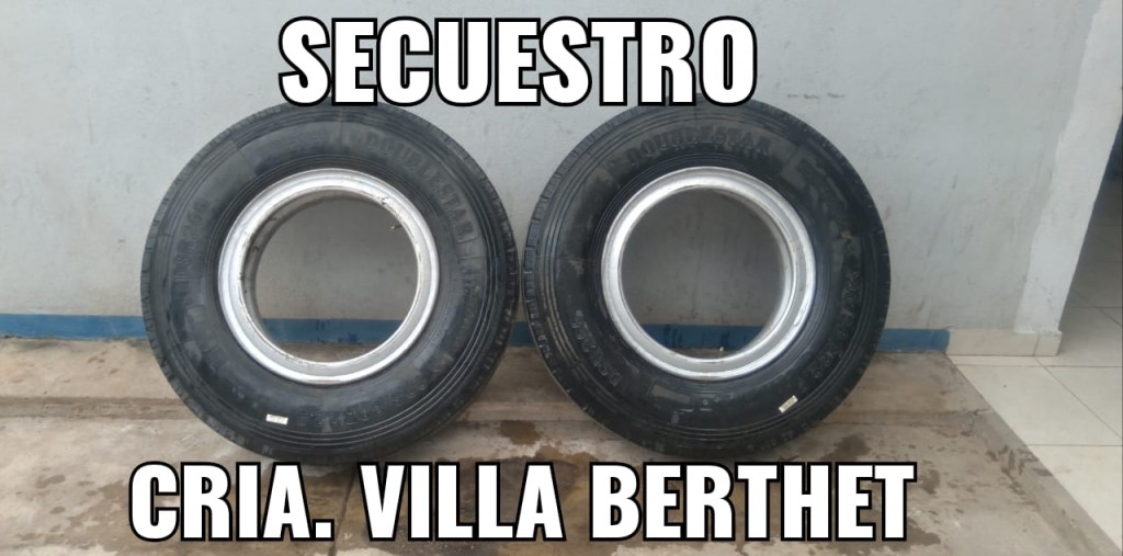 En fecha 31 de marzo, a horas 12:30, radicó la denuncia S. R. V. de 52 años, quien dio cuenta, ser el jefe del taller, encargado del parque automotor Municipal. Manifestando momentos antes, tomar conocimiento de que desconocidos durante la madrugada, sustrajeron del obrador municipal ubicado sobre Ruta N° 6 distante a unos 100 metros del acceso de la ciudad, (02) ruedas completas (llantas y cubiertas) rodados 22,5-295 marca “DOUBLESTAR” ambas nuevas, colocadas en un semi tanque de agua de 25.000 litros, el cual se encontraba estacionado en reparación.