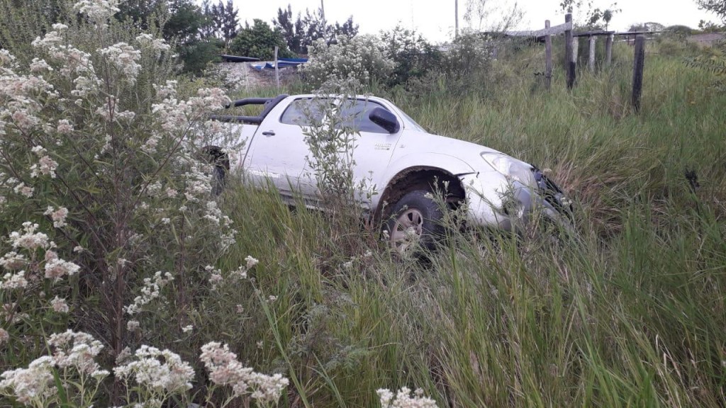 Un ciudadano de 62 años, denunció la sustracción de su camioneta Toyota Hilux, que se encontraba estacionada en la entrada del garaje de su domicilio, en el barrio San José de La Escondida. Mediante recorridas, el personal policial dio con el vehículo incrustado en una zanja en la localidad de Makalle.