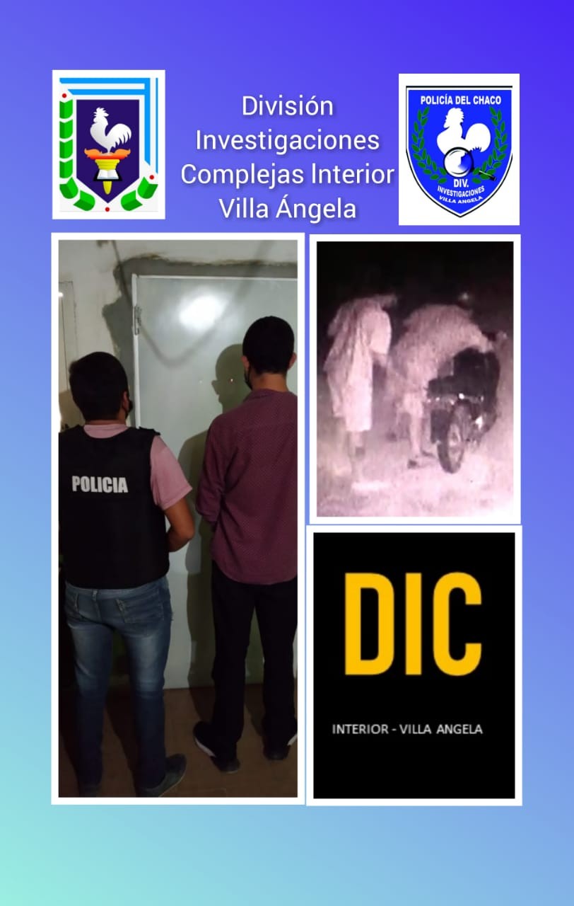 Solicitada la colaboración del personal de la División de Investigaciones Complejas Interior Villa Ángela se logró obtener filmaciones de cámaras de seguridad del hotel en mención y tras analizar las imágenes, se logró relacionar la información recabada con filmaciones, lográndose establecer a los autores del presente hecho; dos ciudadanos con frondosos prontuarios de delitos del mismo modus operandi, identificados como W. X. V. alias GALLO, de 35 años, quién fue a su vez lesionado producto del forcejeo en el robo, el restante H. H., Alias "GORDO GICLI".