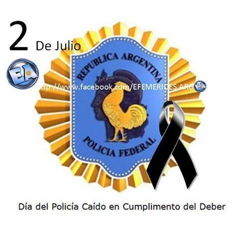 En la fecha se recuerda a los policías federales caídos en cumplimiento del deber a raíz de un hecho sangriento ocurrido un 2 de julio de la década del 70 en dependencias de la entonces Seguridad Federal, razón por la cual se la instituyó como Día del Policía Caído en Cumplimento del Deber.