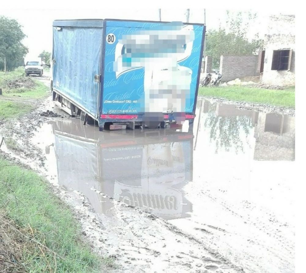 Villa Ángela : Un camión quedo atrapado en un pozo en calle Las Calandrias