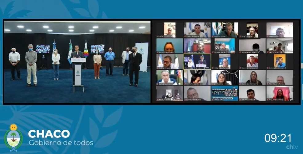 El gobernador Jorge Capitanich, acompañado por miembros de su gabinete y del Comité de Desescalada y de el de Evaluación Monitoreo y Seguimiento de la emergencia sanitaria, anunció en la mañana de este sábado las nuevas medidas para la contención de los contagios de coronavirus en la provincia.