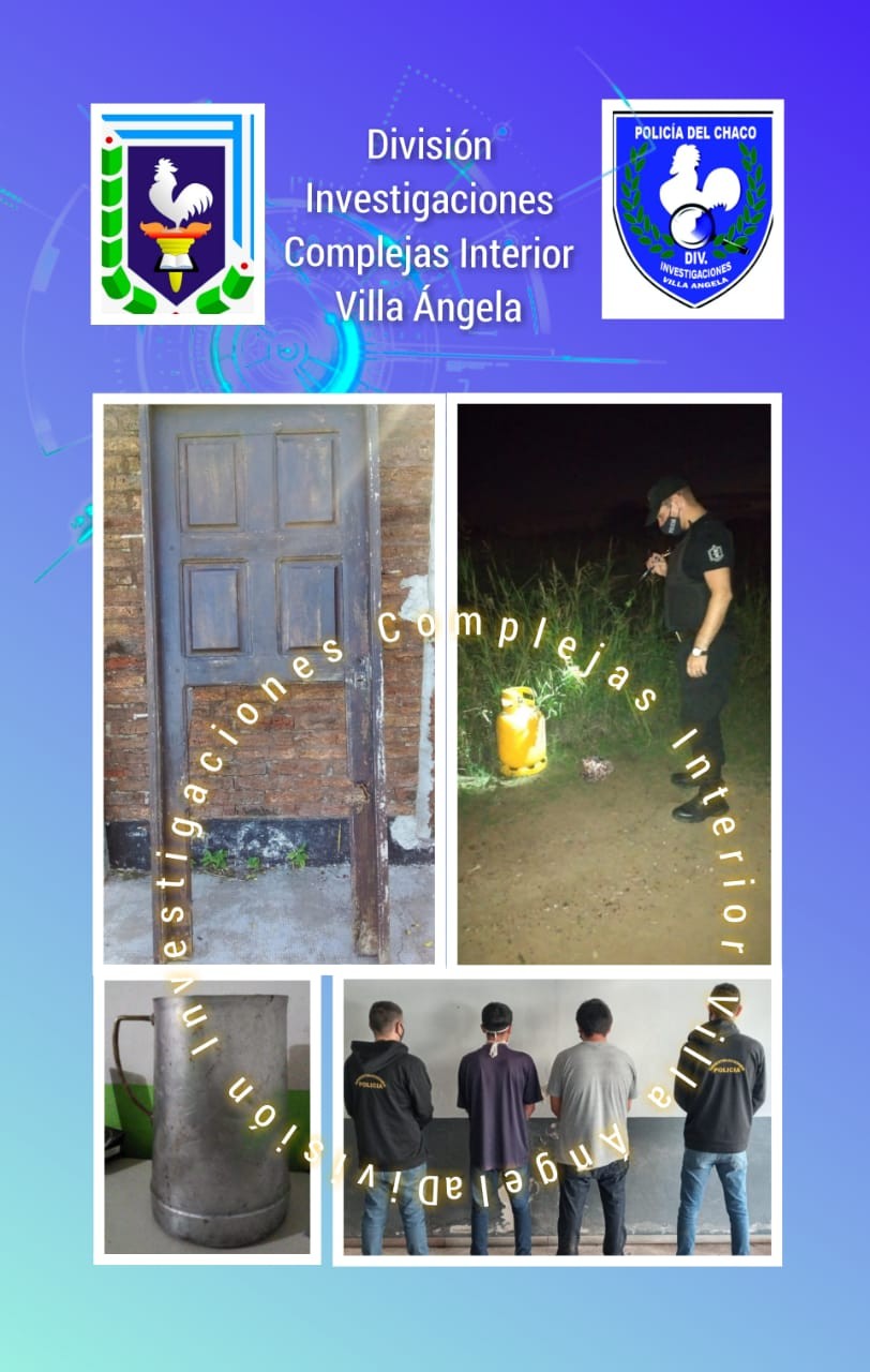 En la misma fecha personal de la División 911 logro el secuestro de un tubo de gas, el cual fue abandonado por los autores en Ruta Nacional Nº 95 y Camino “El Caranchal”. Restando el recupero de los restantes elementos sustraídos e identificación de los supuestos autores, por lo que se solicitó la intervención de la División Investigaciones Complejas Interior Villa Ángela.