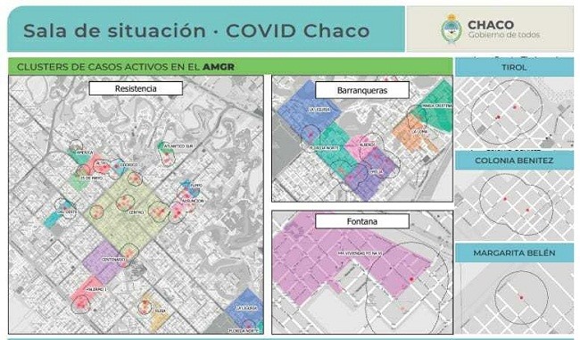 En función de la tasa de incidencia de los últimos 14 días y su evolución reciente, a partir de los datos brindados por el Sistema Integrado de Información Sanitaria Argentino (SISA) del Ministerio de Salud de la Nación, las localidades incluidas a partir de este sábado 1 de mayo en el grupo con restricciones son: Basail, Campo Largo, Chorotis, Ciervo Petiso, Colonia Benítez, Colonia Popular, Colonias Unidas, Coronel Du Graty, Cote Lai, Gancedo, General San Martín, General Vedia, Juan José Castelli, Las Breñas, Las Garcitas, Makallé, Miraflores, Pampa Almirón, Puerto Tirol, Puerto Vilelas, Sáenz Peña, Tres Isletas y Villa Ángela.