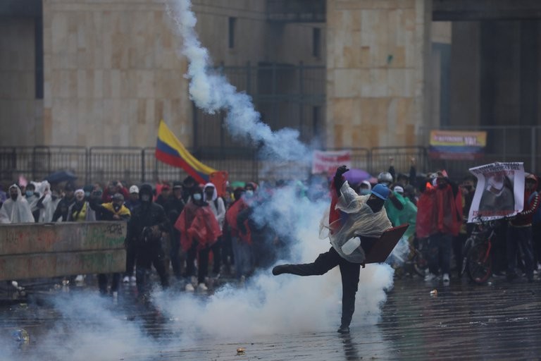 Las manifestaciones que ya llevan una semana comenzaron con el rechazo ciudadano a un ambicioso proyecto de reforma fiscal, pero continuaron aun después de que fuera cancelado por el presidente Iván Duque. Cifras oficiales señalan que, entre la represión y los disturbios, al menos 24 personas murieron y más de 800 quedaron lesionadas.