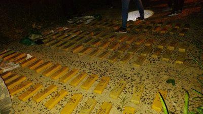Seguidamente, verificaron el lugar y encontraron tres bolsas que contenían 114 panes de marihuana, que arrojaron un peso total de 91,605 kilogramos.