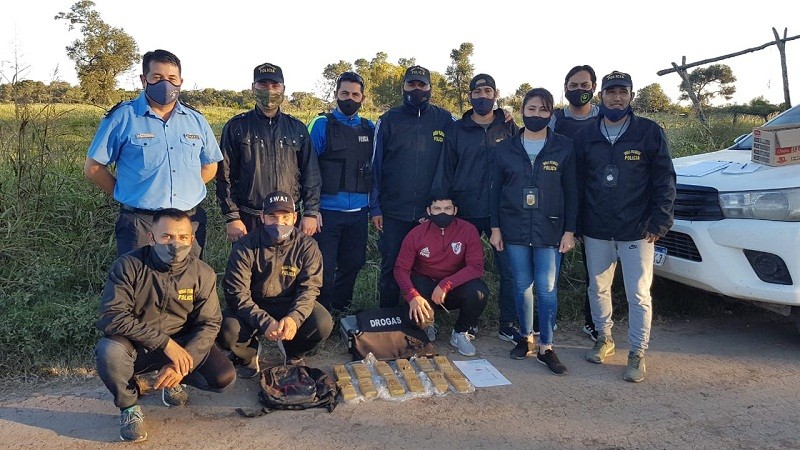Conforme lo dispuesto por Magistrado actuante se procedió secuestro mochila y sustancias. Se hizo presente en el lugar, el Director Zona Interior Villa Ángela, Comisario Mayor Norberto Gustavo DOMÍNGUEZ. Además, se contó con colaboración de distintas Unidades dependientes de la DZIVA, y se prosigue con la búsqueda del rodado en cuestión.