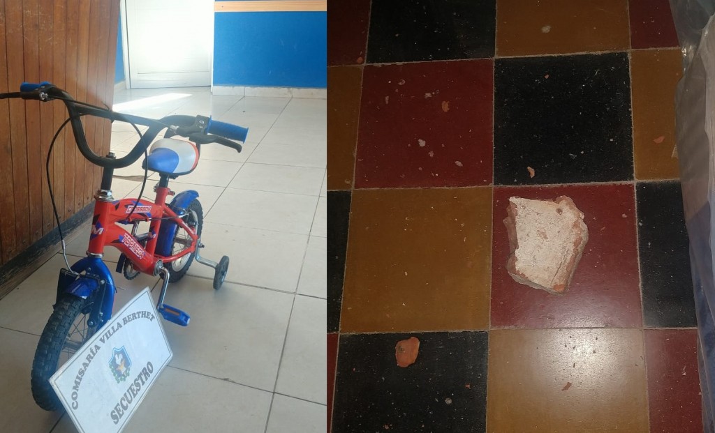 La prevención se entrevista con R. H. C. de 56 años, domiciliada en Samuhu, quien manifestó que desconocidos en horas de la madrugada, previo de violentar la vidriera, sustrajeron desde el interior del mismo, una bicicleta marca TOP MEGA, rodado 12, para niños, de color roja con detalles azules, nueva.