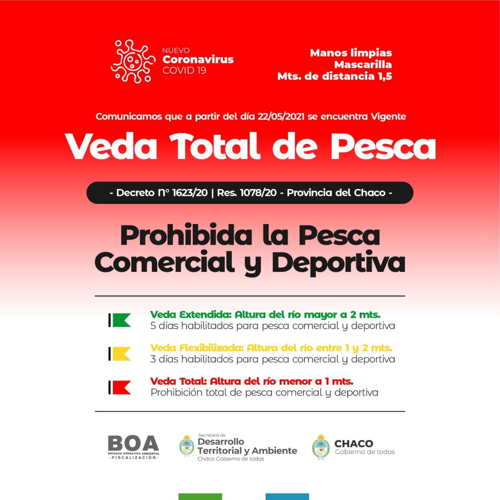 La normativa establece que, de acuerdo a la altura que marca el río en el hidrómetro del puerto de Barranqueras, arriba de los 2mt se aplica la veda extendida, con cinco días habilitados para la actividad pesquera; con la altura del río entre 1 y 2 metros rige la veda flexibilizada con tres días habilitados para la pesca comercial y tres días habilitados para la deportiva; y por debajo del metro, se declara la veda total, con prohibición absoluta para la actividad pesquera.