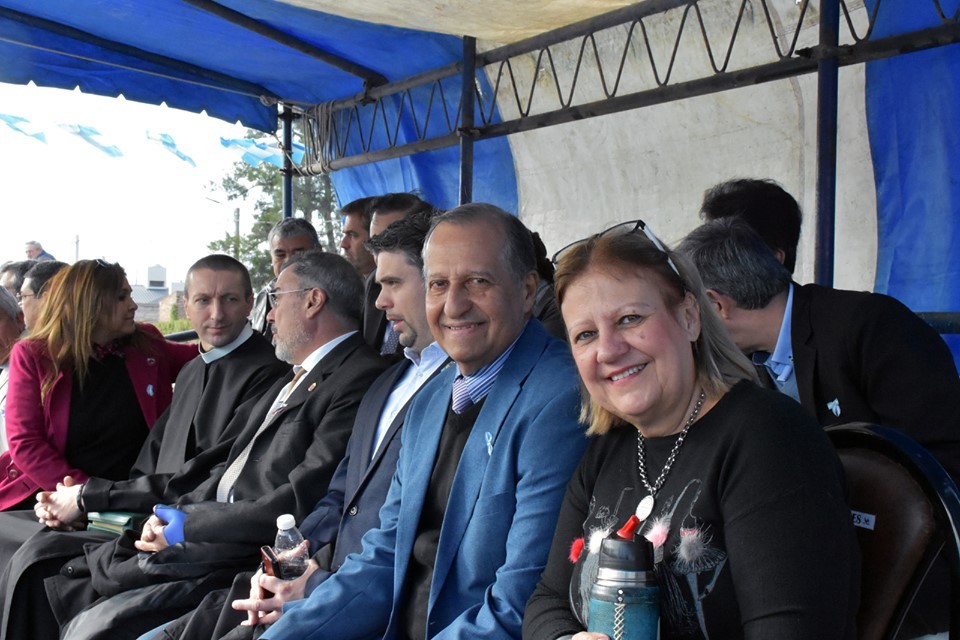 Como estaba previsto en el programa de actividades, se realizó el izamiento de la bandera en la plaza central y la plaza 9 de julio, el ingeniero Papp junto a concejales y su equipo de gobierno asistieron también al Tedeum en la parroquia Sagrado Corazón de Jesús y luego participaron del acto y desfile de instituciones en el Espacio Público de Usos Múltiples.