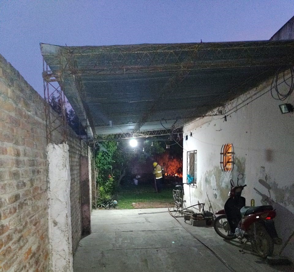 Partió al lugar una dotación de bomberos a cargo del Sargento de Policía Néstor F. Ojeda, donde una vez en el lugar constataron fuego sobre pastizal y basura en el patio trasero de una casa de 50x50 mts.
