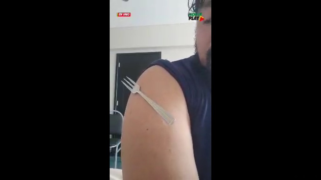 "El 15 de mayo nos vacunaron a todos los colegas en el Club Sarmiento, recibimos la primera dosis de la vacuna Sputnik. Me habían llegado videos virales, no hice la prueba porque me dije que eran editados y un día, estando en aislamiento por coronavirus, el día 25 ingresamos en aislamiento en el Hotel Gala aquí en Resistencia, hicimos una prueba con un celular, con otro, con un tenedor, con diferentes cosas que notamos que por algún motivo se quedaban pegados en el lado donde recibí la vacuna" explicó el periodista.