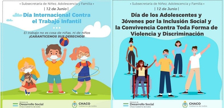 Los 12 de junio de cada año el Ministerio de Desarrollo Social, a través de la Subsecretaría de Niñez, Adolescencia y Familia y de la Subsecretaría de las Juventudes y Diversidad, conmemora el Día Mundial contra el Trabajo Infantil y el Día de los Adolescentes y los Jóvenes por la Inclusión Social, la Convivencia contra toda forma de Violencia y Discriminación. Ambas efemérides representan fechas para la promoción y concientización de los derechos esenciales de los niños, niñas, adolescentes y jóvenes, para la construcción de comunidades y ciudadanías más inclusivas y libres de prejuicios.
